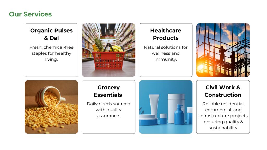 We sell a wide variety of organic pulses, agricultural products, and other goods. Our products are sourced directly from Bundelkhand farmers, known for their commitment to high-quality and sustainable production methods.